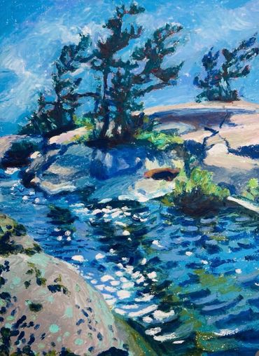 A painting of the Nith River which ran through my hometown. I enjoyed playing around with simplified colours and impressionist brushstrokes.
