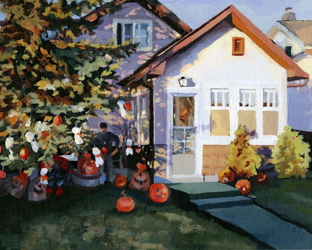 A painting of my maternal grandparents home in South Porcupine Ontario just before Halloween in 1999.